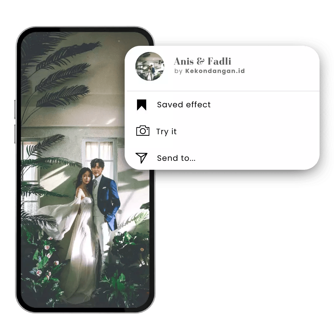 Bantu kami mengabadikan momen-momen bahagia di acara pernikahan kami dengan Instagram Filter di Stories, Save Filter yang telah kami sediakan dan Jangan Lupa Tag ya ❤